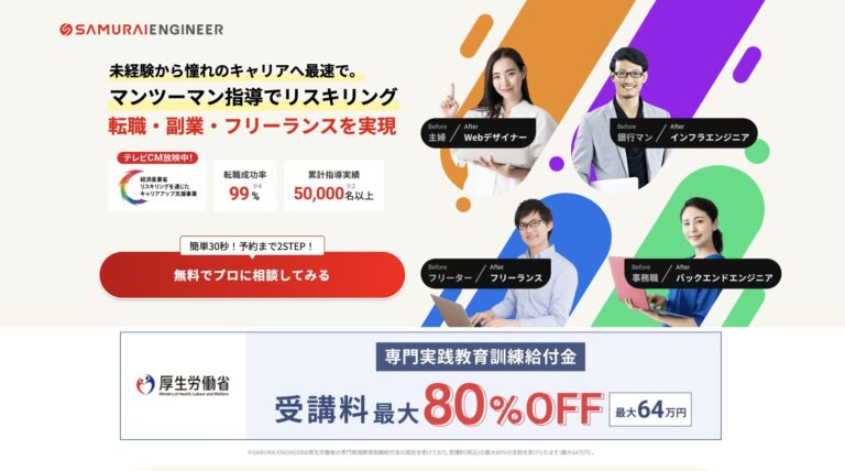 「侍エンジニアを検討・受講しているけれど、途中で退会できるのか不安」「退会方法が分かりにくい」 このような理由で「侍エンジニア 退会 方法」と検索している方は少なくありません。 結論からお伝えすると、侍エンジニアは退会(解約)できます。ただし、タイミングによって返金額や手数料が大きく変わるため、事前に正しいルールを把握しておくことが重要です。 この記事では、 を、公式情報と調査データをもとに分かり […]